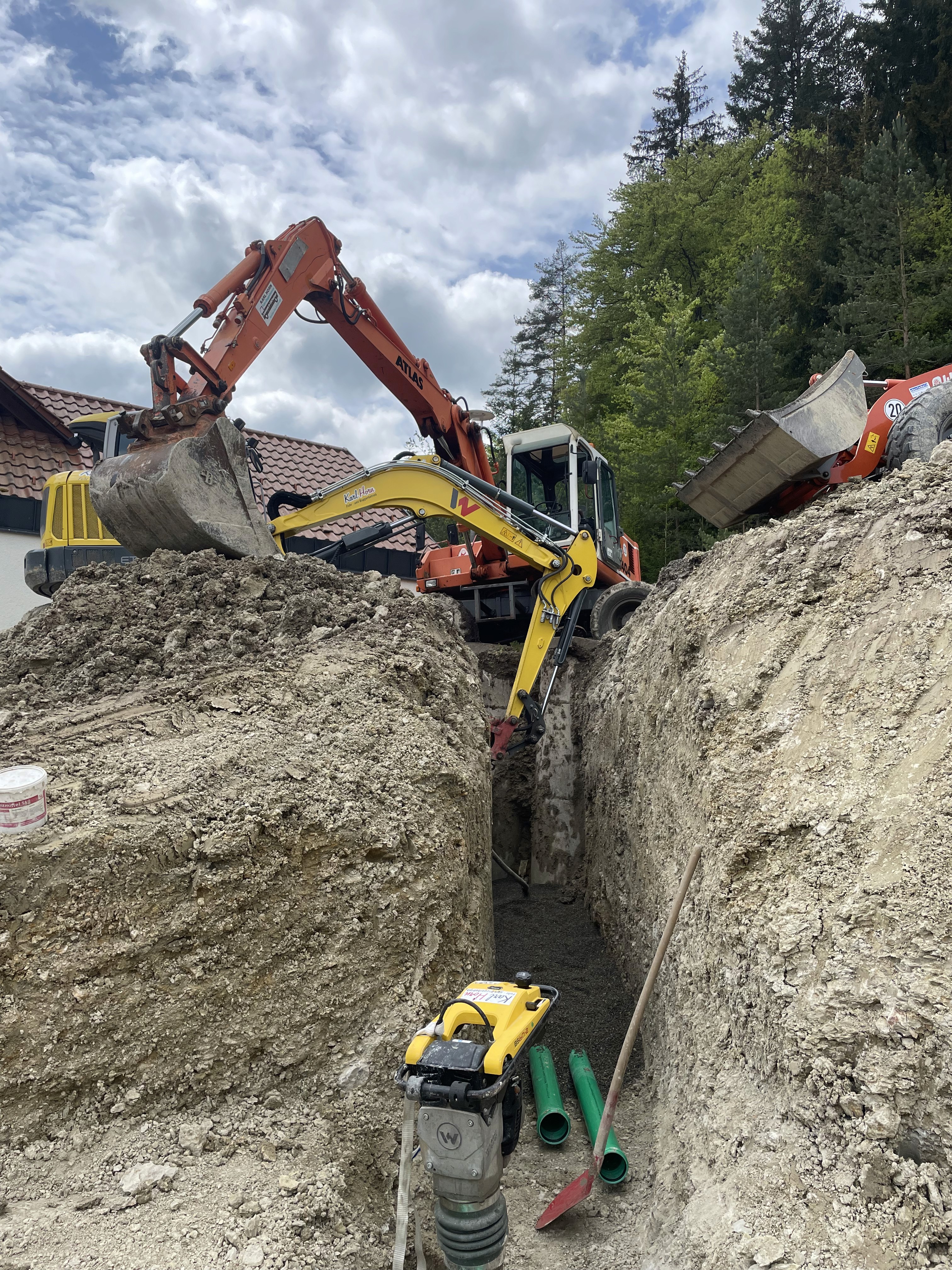 Im Rahmen dieses Projekts wurden umfangreiche Tief- und Kanalarbeiten durchgeführt. Der Einbau neuer Leitungen erfolgte präzise und fachgerecht, inklusive Sicherung der Baugrube und fachgerechtem Verfüllen.