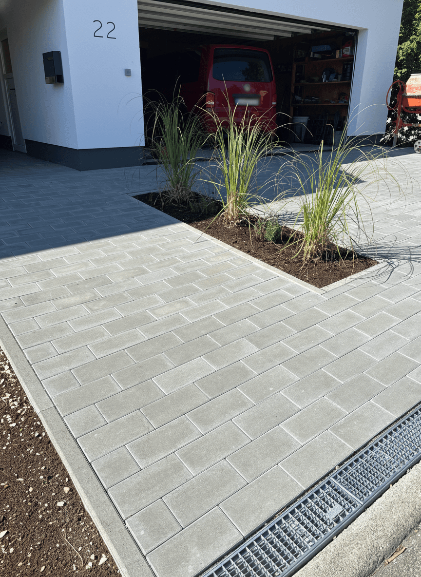 Sauber geplante Pflasterarbeiten für Hofeinfahrten, Garagenzufahrten, Wege und komplette Außenanlagen – zuverlässig umgesetzt vom regionalen Fachbetrieb.